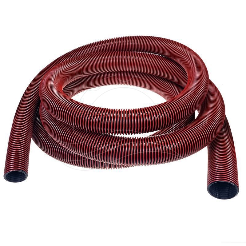 Flexibler, 5 m langer, rot-schwarzer Staubsaugerschlauch. Hergestellt aus verstärktem Kunststoff mit glatter Innenfläche. Der Schlauch verjüngt sich von einem Innendurchmesser von 50 mm auf 38 mm.